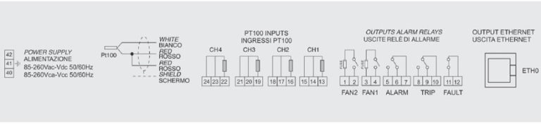 Disponible también con 4 entradas TCK, en la versión estándar las entradas son para sondas PT100, la versión ETH está equipada con salida Ethernet con protocolo Modbus TCP/IP para visualizar y programar todas las funciones de la unidad de control, ¡desde la comodidad de su escritorio!